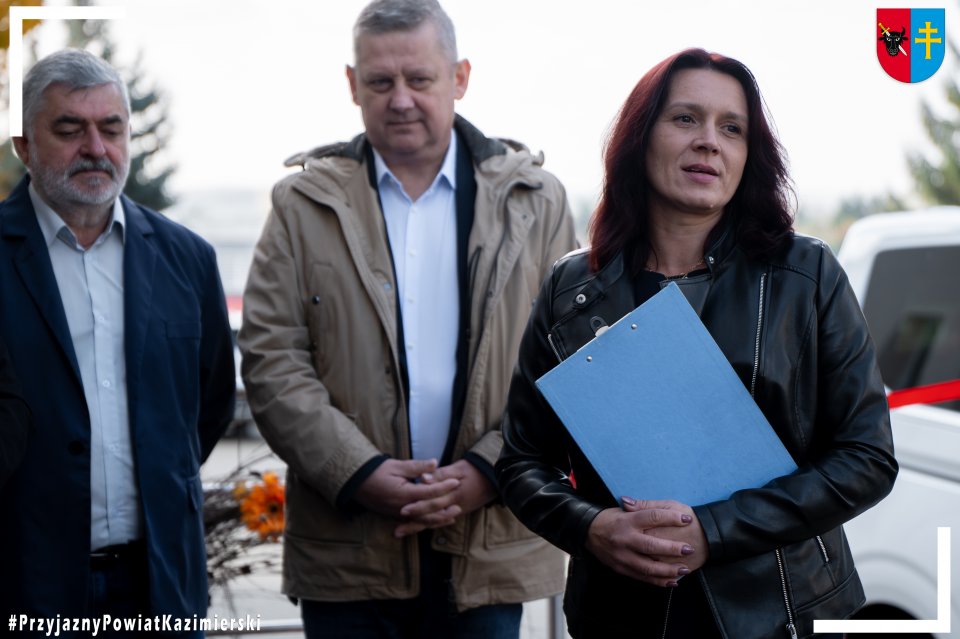 Zakup samochodu został dofinansowany ze środków Państwowego Funduszu Rehabilitacji Osób Niepełnosprawnych w wysokości 144 000,00 zł, w ramach Obszaru D -Likwidacja barier transportowych „Programu wyrównywania różnic miedzy regionami III”. W uroczystości wzięli udział przedstawiciele władz Powiatu Kazimierskiego: Starosta Kazimierski Pan Jan Nowak, Wicestarosta Powiatu Pan Marek Olejarski, Członek
